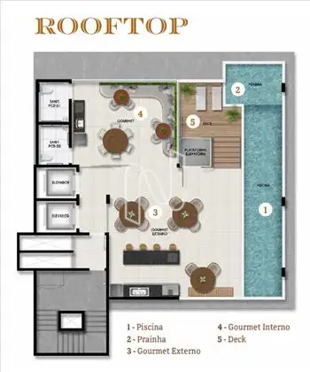 Academia, lavanderia, sala multiuso, piscina, prainha, gourmet externo, gourmet interno, deck, bike station, rooftop, hall de entrada.