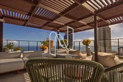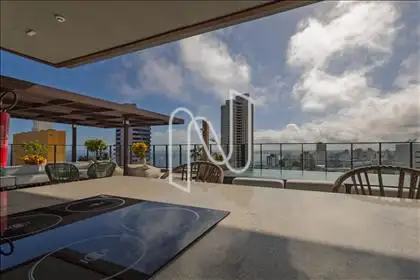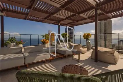 - Rooftop com Sky Lounge: Área de lazer no topo do edifício, oferecendo piscina com borda infinita, espaço gourmet e vista panorâmica da Baía de Todos os Santos.