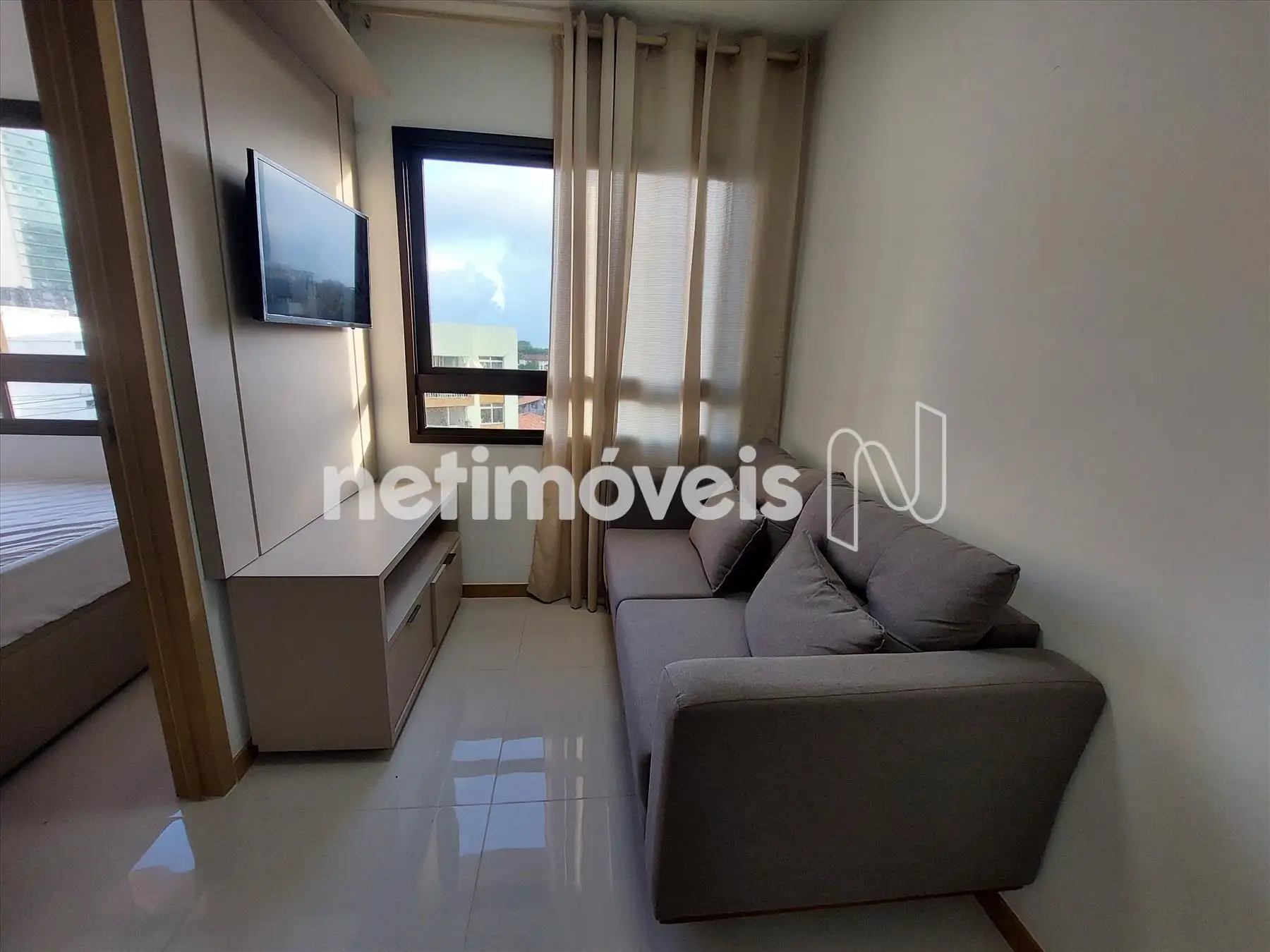 Sala com piso em cerâmica.