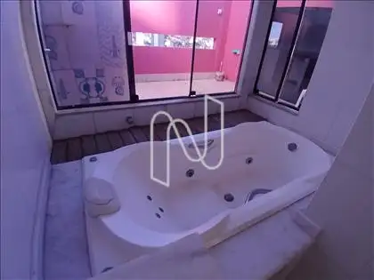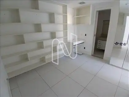 1 Quarto com banheira de hidromassagem, closet, piso em cerâmica e armários.