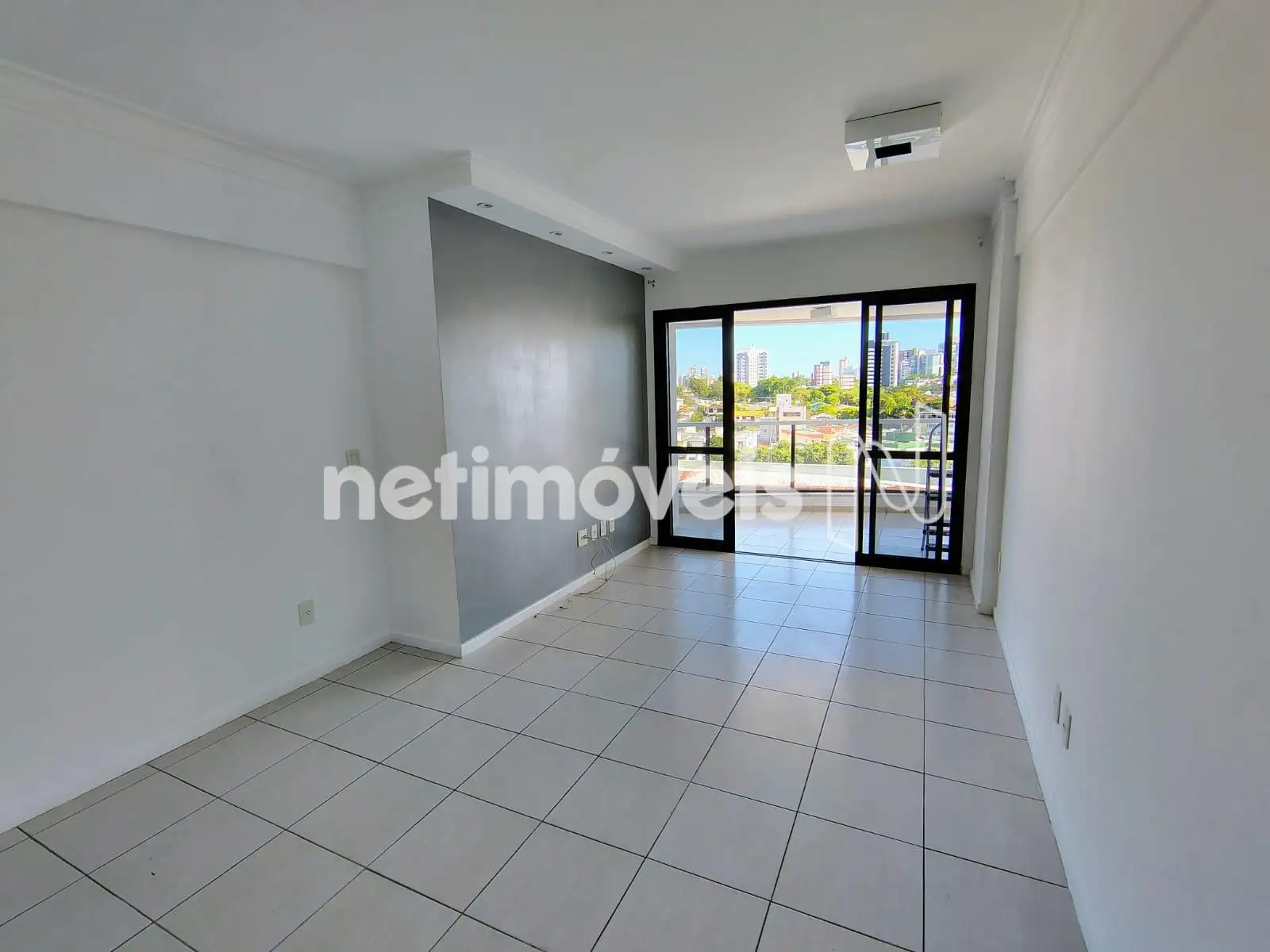 Sala com varanda incorporada, com piso em cerâmica.