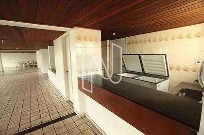 Amplo e bem distribuído apartamento composto por sala de estar, três quartos (sendo uma suíte), banheiro social, cozinha espaçosa, área de serviço com dependência completa e duas vagas de garagem.
