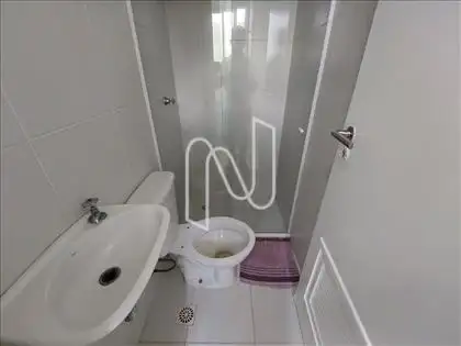 Banheiro de serviço com piso em cerâmica.