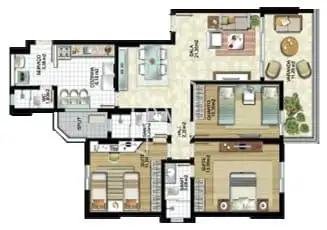 3 quartos com armários, sendo 2 suítes, piso em cerâmica.