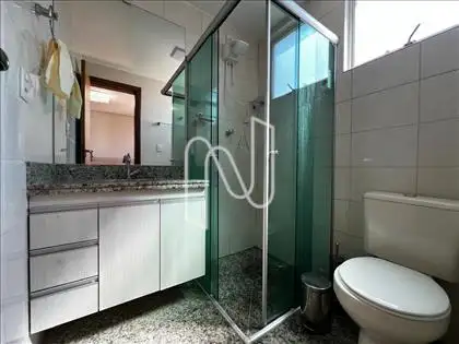 - Banho social e suíte com as mesmas características: piso e bancadas em granito, armários planejados sob bancadas, box em vidro temperado.