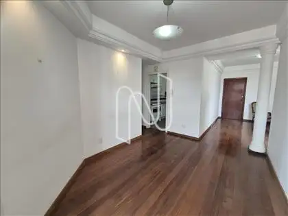• Sala ampla para dois ambientes com piso em tábua corrida e varanda