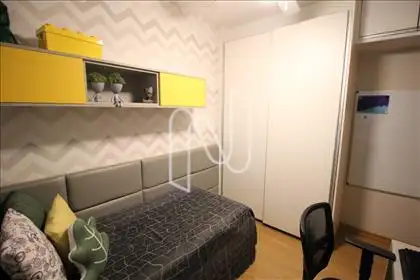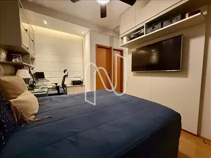 03 quartos, todos também super bem decorados, sendo um suíte com closet, com ótimos armários planejados e piso em laminado, varanda incorporada também com escritório planejado por arquiteto, com piso em porcelanato e linda vista panorâmica!