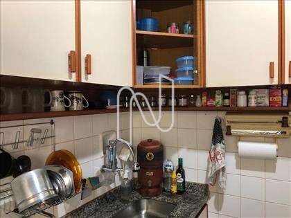 01 cozinha com bancada em granito com armários sob a pia e nas paredes.