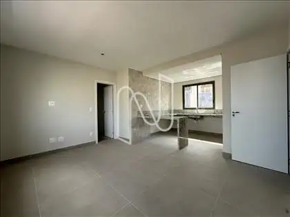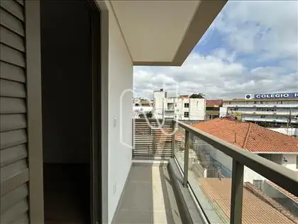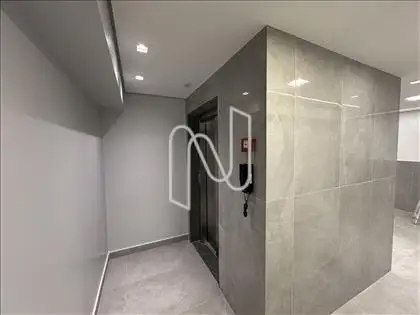 Prédio novo, revestido em textura, elevador, hall social, 2 unidades por andar.