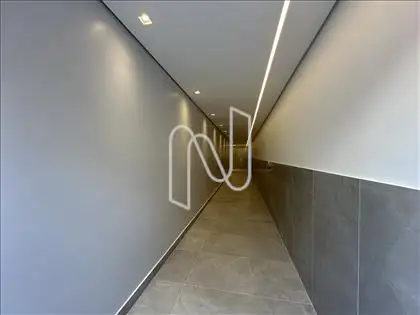 Prédio novo, revestido em textura, elevador, hall social, 2 unidades por andar.