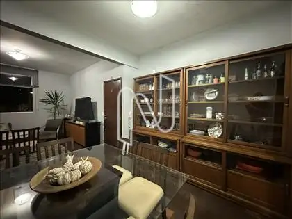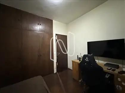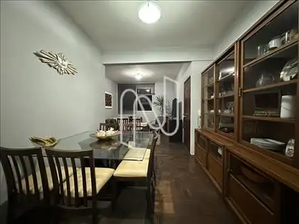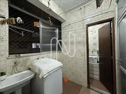 Sala para 2 ambientes com piso em taco, 3 quartos com armários sendo um suíte, banheiro social e suíte reformados, cozinha com armário, área de serviço independente, banheiro de empregada.