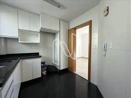 Apartamento com sala para dois ambientes com piso em porcelanato, 3 quartos com armários sendo 1 suíte, banho social e suíte com armários, box e espelho, cozinha com piso e bancada em granito, armários sob e sobre bancada e área de serviço separada.