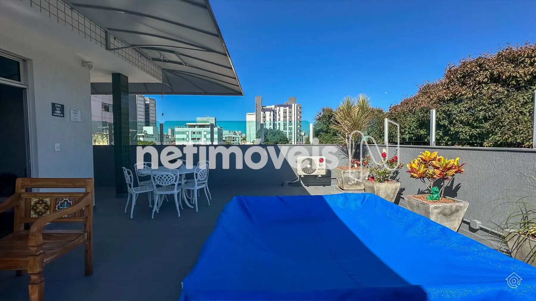 Terraço com churrasqueira/ducha e área para piscina/SPA. Vista livre.