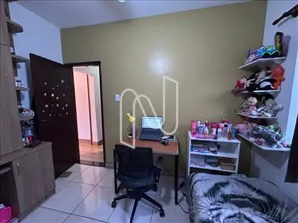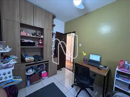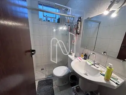 - Três quartos com armários, sendo um com suíte e varanda, piso cerâmico e banho com box em blindex;
