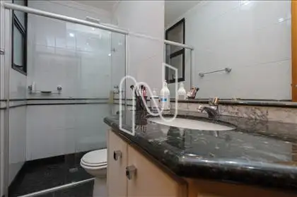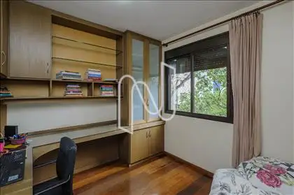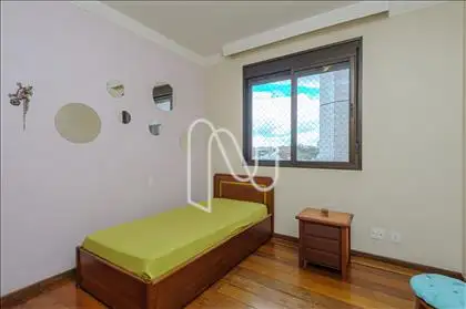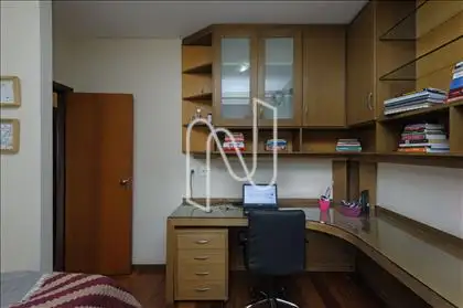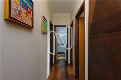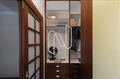 04 quartos grandes com piso em tábua corrida e armários, sendo 01 com suite e closet. Um dos quartos é usado para sala de TV, sendo reversível. Corredor com rouparia.
