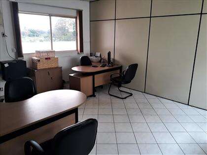 Escritório contendo 5 salas com aproximadamente 100m² e galpão secundário de 290m² com pé direito de 6 metros, telhado em estrutura metálica, piso industrial.